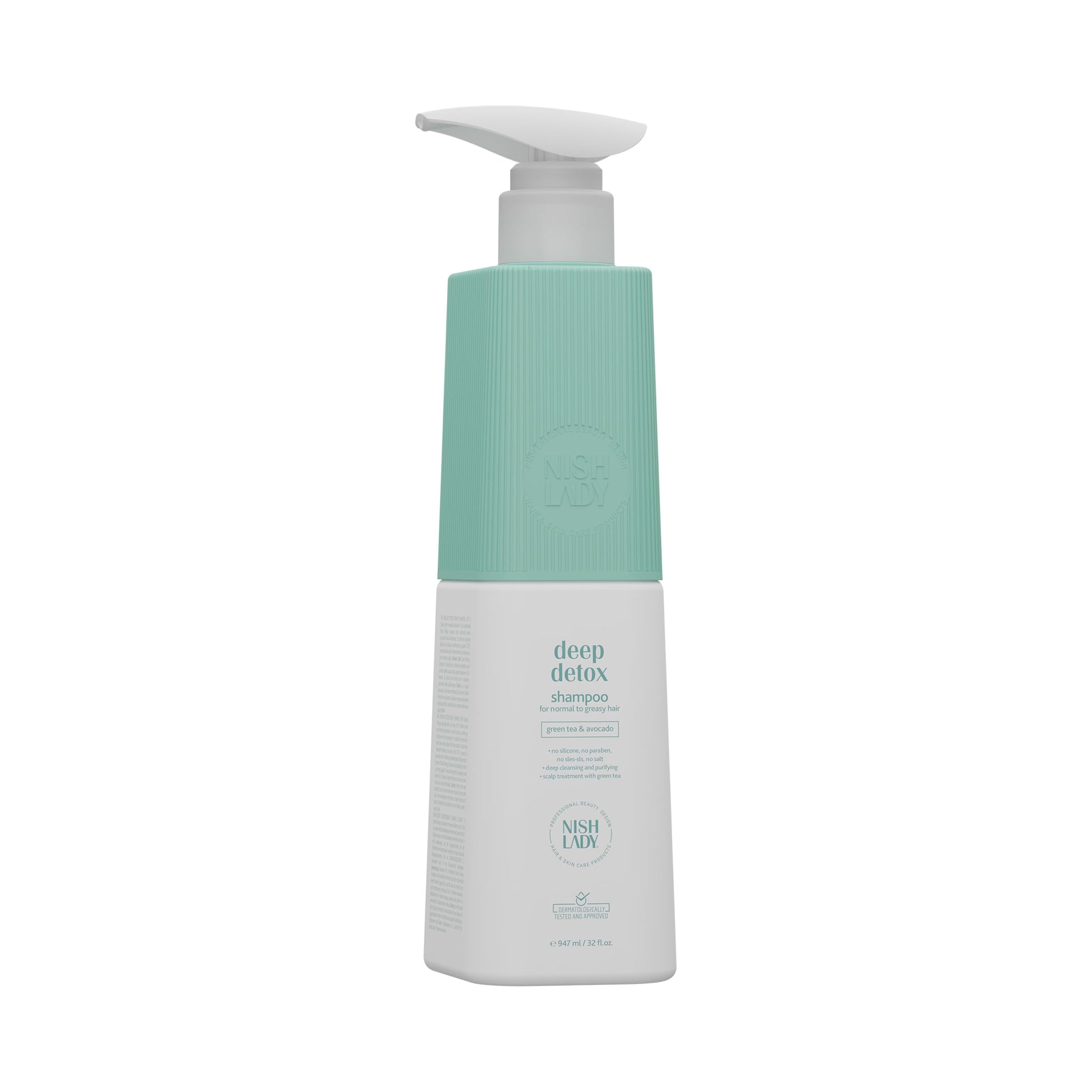 Nishlady Deep Detox Clarifying Shampoo for Normal to Greasy Hair, 947 ml | Green Tea & Avocada Extracts